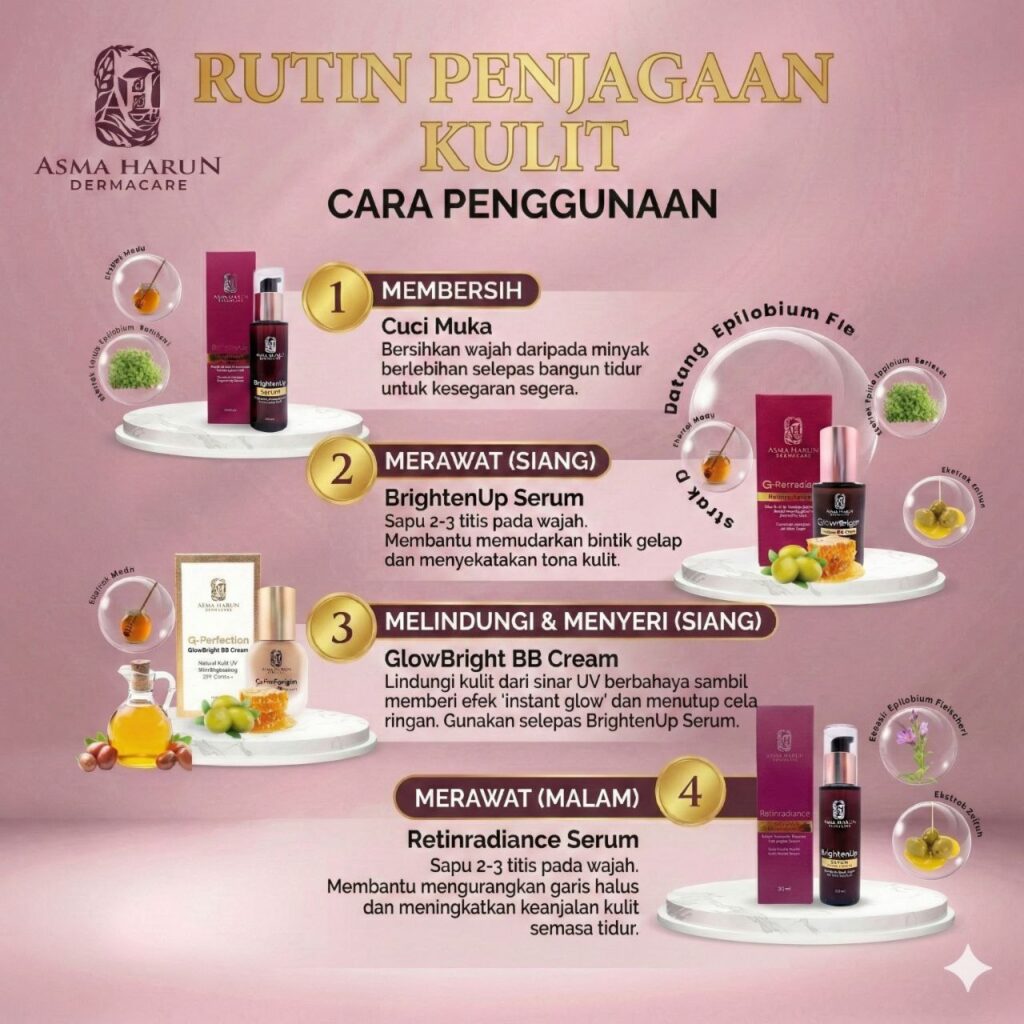 Produk ini bukan sekadar untuk dijual, tapi benar-benar menjadi ikhtiar penjagaan kulit harian Ustazah sendiri.